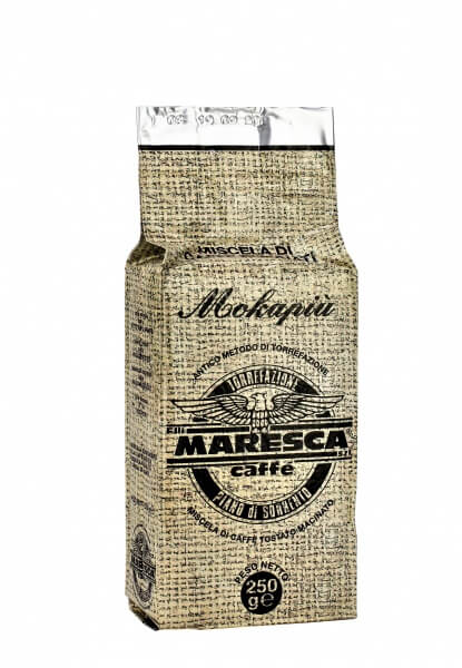 The Maresca Mokapiù blend coffee is produced through a mainly artisanal roasting process. Packaged in 250 gr bags, this blend is produced starting from the choice of the best quality green coffees. You can appreciate the sweet and full-bodied taste and the strong aroma that give this blend unique characteristics.